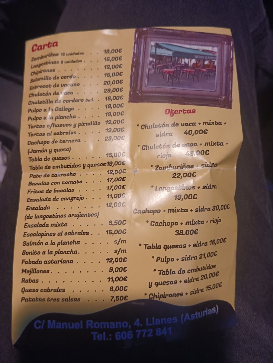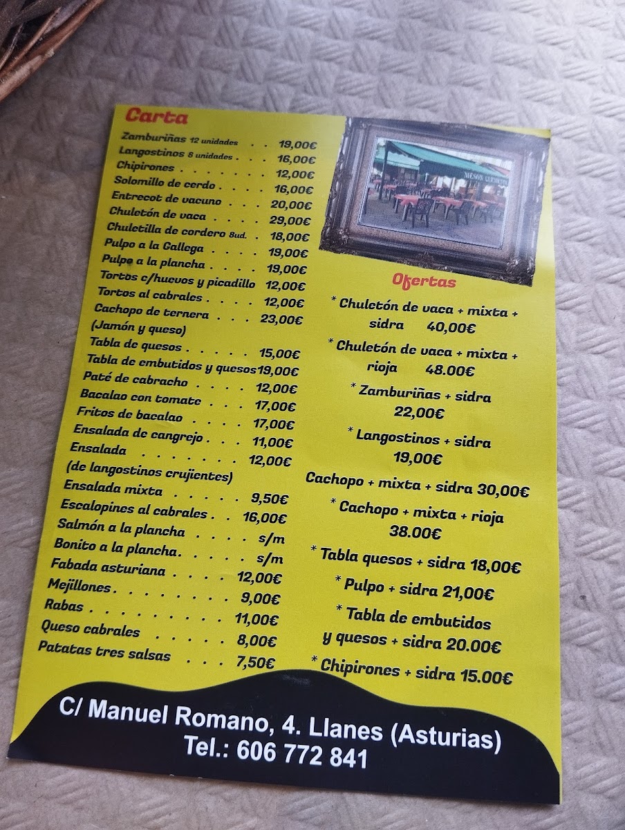 Meals here feel unhurried and satisfying, ideally enjoyed over a glass of cider or a well-poured wine, whether sitting outdoors soaking up the sun or inside in a welcoming, informal setting. The menu also includes traditional desserts like Tarta de la Abuela and Tarta de Queso y Nata, which bring a sweet finish to the dining experience.