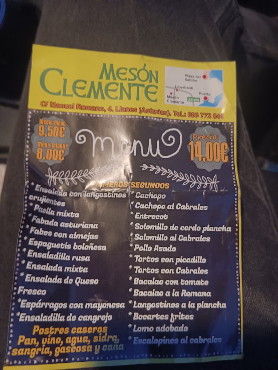 Bar Clemente offers a menu that strikes a balance between comforting Asturian classics and familiar Spanish favorites, perfect for relaxed lunches or casual dinners. The selection features hearty dishes like Fabada Asturiana and Cachopo de Ternera con Patatas Fritas y Queso Cabrales, alongside lighter options such as Ensalada de Langostinos Crujientes and Ensalada Mixta.